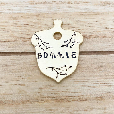 All tags are hand stamped, rather than laser engraved. This means that no two tags will be identical. We do our best to get the letters evenly spaced, but there will be a uniqueness to each and every tag.